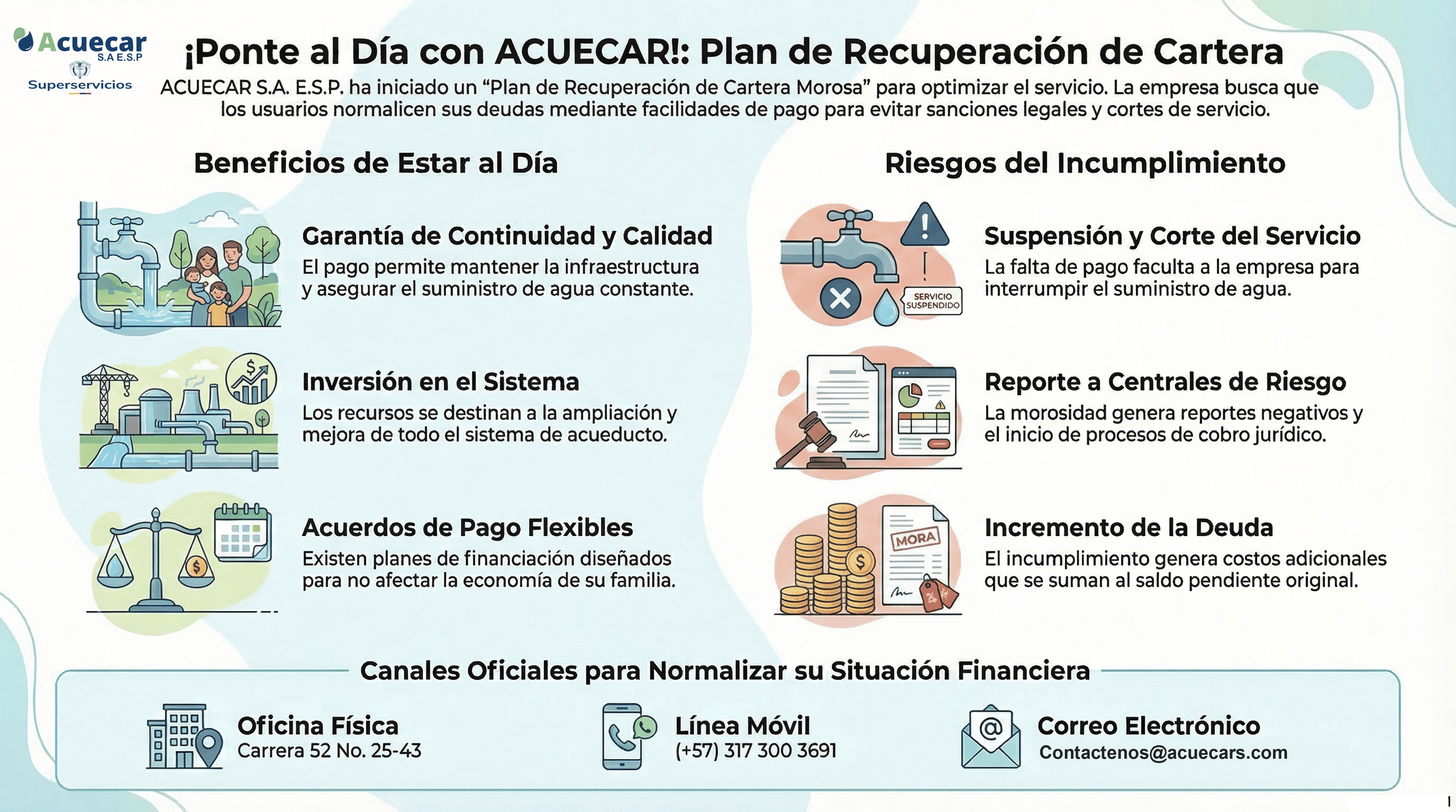 En septiembre de 2005 se dise帽贸 un plan de acci贸n con el apoyo del Gobierno Nacional (MAVDT), dentro del cual se estableci贸 la necesidad de crear una nueva empresa de servicios p煤blicos. Se defini贸 un plan de choque y en diciembre de 2005 se crea la empresa ACUECAR S.A. E.S.P., con el apoyo del Ministerio de Ambiente, Vivienda y Desarrollo Territorial.